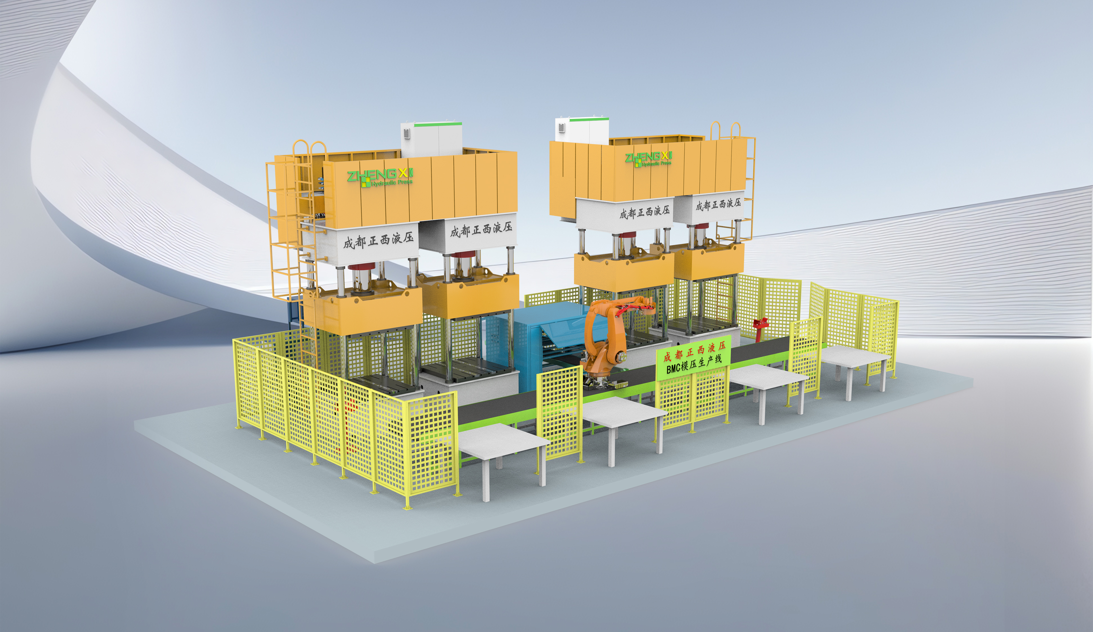 该系列模压生产线主要用于SMC工艺、HP-RTM工艺、LFT-D工艺、GMT工艺和BMC/DMC工艺等复合材料,生产线内包含多种设备,可在一定程度减少人工成本和减少时间。